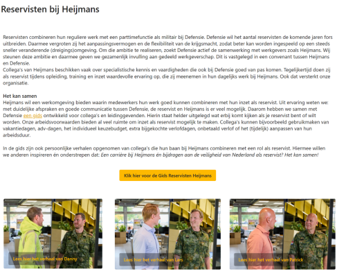 Intern is het reservistenschap goed verankerd. Medewerkers vinden alle relevante informatie op één centrale plek: een insitepagina met uitleg, inspirerende voorbeelden en een praktische gids voor zowel reservisten als hun leidinggevenden. Hierdoor weten medewerkers waar ze aan toe zijn en worden gesprekken hierover minder afhankelijk van individuele leidinggevenden.